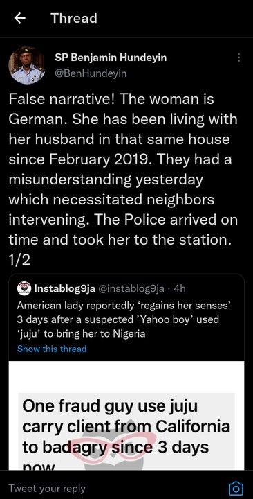 According to Police Spokesperson, Benjamin Hundeyin, the story is not true.