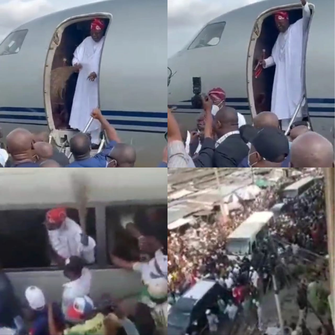 Nigerian politician, Bola Tinubu has been welcomed to Lagos by a massive crowd.