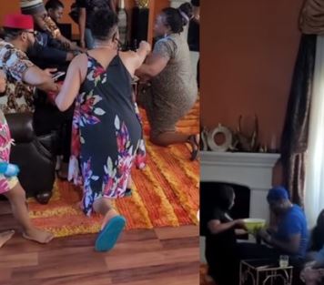 Some Nigerian women based in Dallas Texas left their husbands in shock as they all knelt down while giving them wash hand basins to clean their hands before serving their meals.