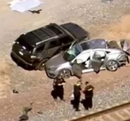 At least two bodies were seen lying on a gravel embankment roughly 25 feet from the vehicle, according to local reports.