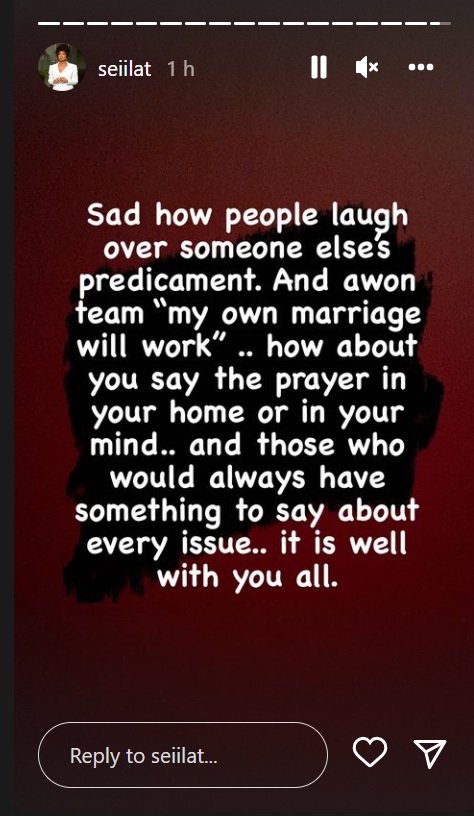 Recall that shortly after news of the couple's separation went viral, Alichi took to her Instastory to write "my marriage is working and will continue to work".