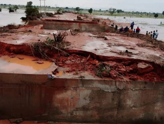 A section of the Bauchi-Bara-Gombe highway cut off by flood after a heavy downpour
