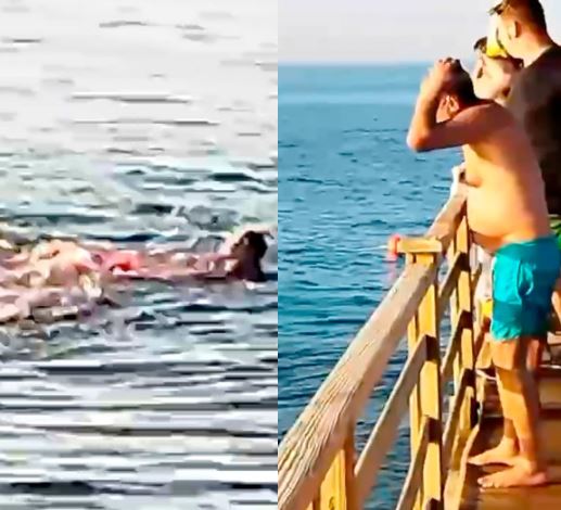 A large crowd watched the drama unfold on Friday, July 1, but no one was seen entering the water to help the woman, who lived in Egypt with her native partner.