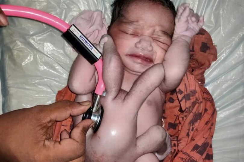 The baby sparked disbelief throughout India after being born with an extra pair of legs and arms.