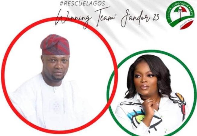 The Lagos State chapter of the Peoples Democratic Party (PDP) has debunked reports that Nollywood actress, Funke Akindele is the running mate of its governorship candidate, Olajide Adediran a.k.a Jandor.