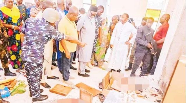Ondo State Governor Rotimi Akeredolu at the scene of the church attack