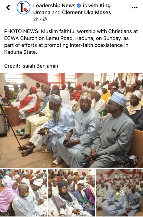 Some Muslim faithfuls have worshipped with Christians at ECWA Church along Lemu Road, Kaduna, on Sunday.