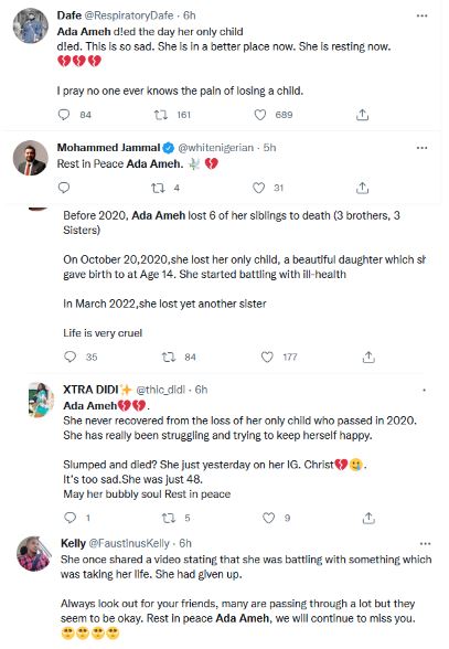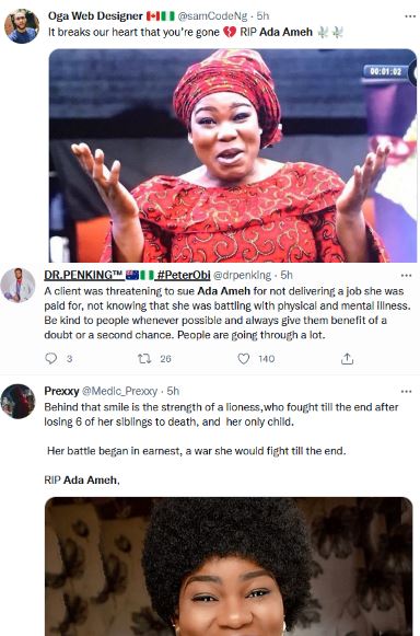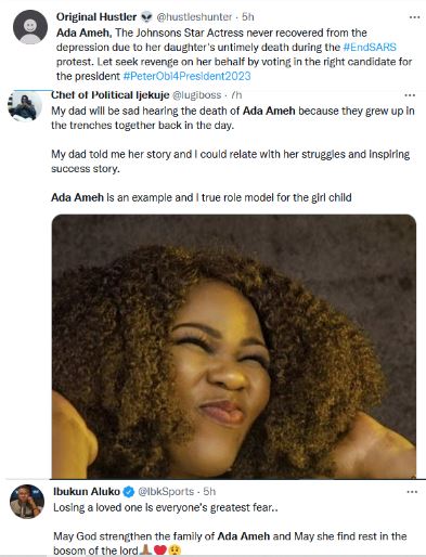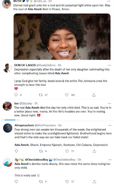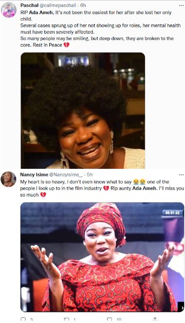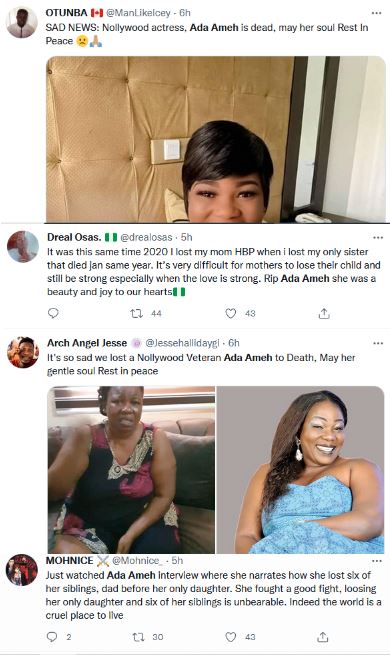 Nigerians have expressed shock, grief and sorrow following the sad passing of Nollywood actress, Ada Ameh.