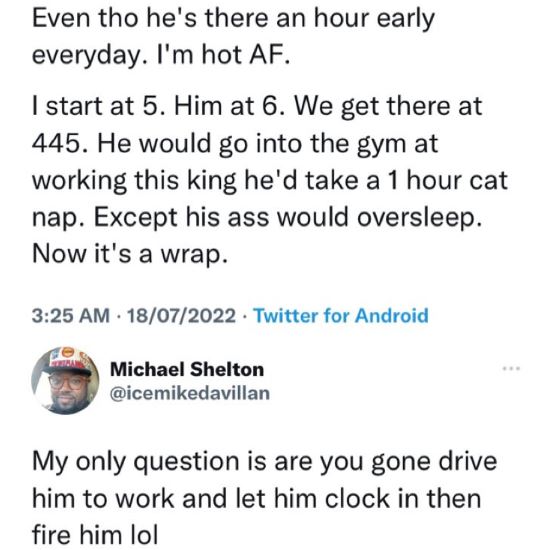 In a post shared on Twitter, the Nigerian man said his friend consistently goes to the gym during work hours and also takes an hour nap while at work.