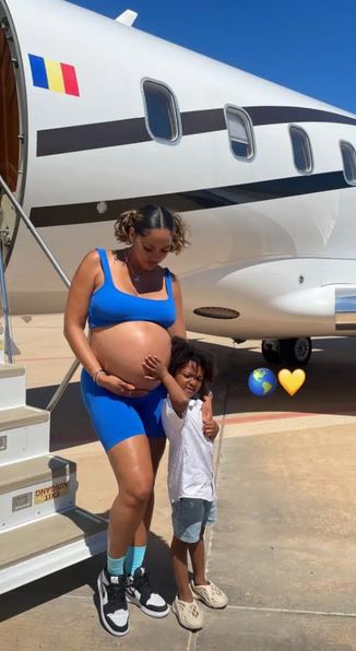 Taking to her Instagram stories, Jada Pollock shared some cool mother and son pictures inside a jet with her bare bump on display.