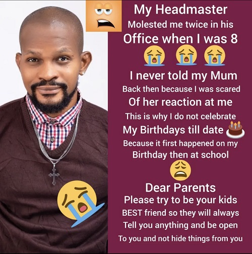 Nollywood actor, Uche Maduagwu has revealed that he was molested by his teacher.