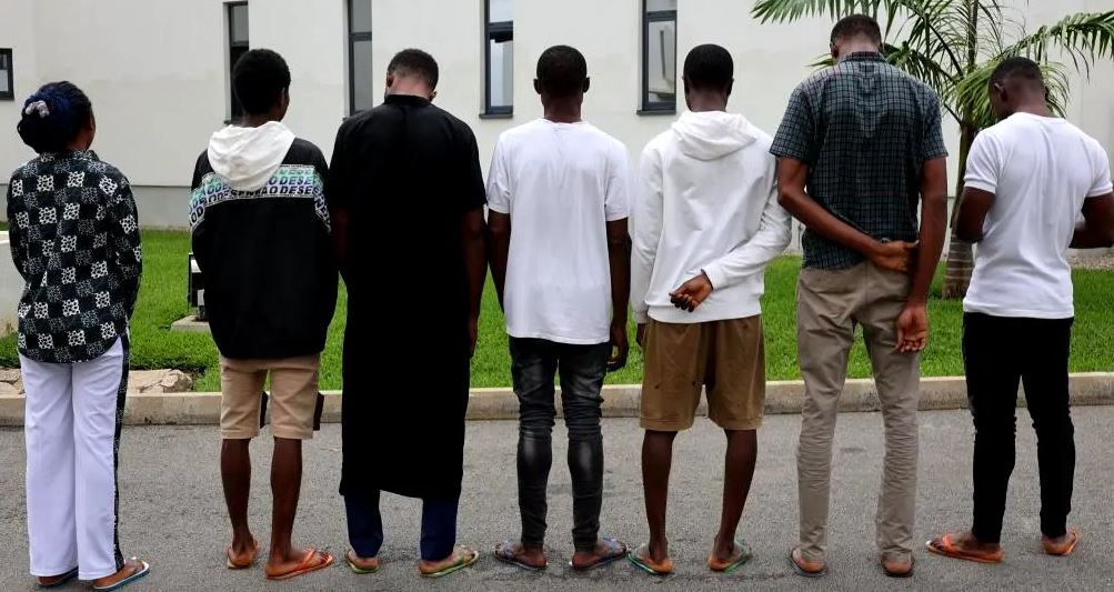 The suspects, Nnonyelu Favour Chioma, Ajator Henry Sopulu, Ego Andy Seji, Okeke Ikechukwu Jude, Oshioriamite Perfect, Ego Akin and Okeke were arrested on Friday in a sting operation at Tunlapal Estate, Kurudu, Abuja.