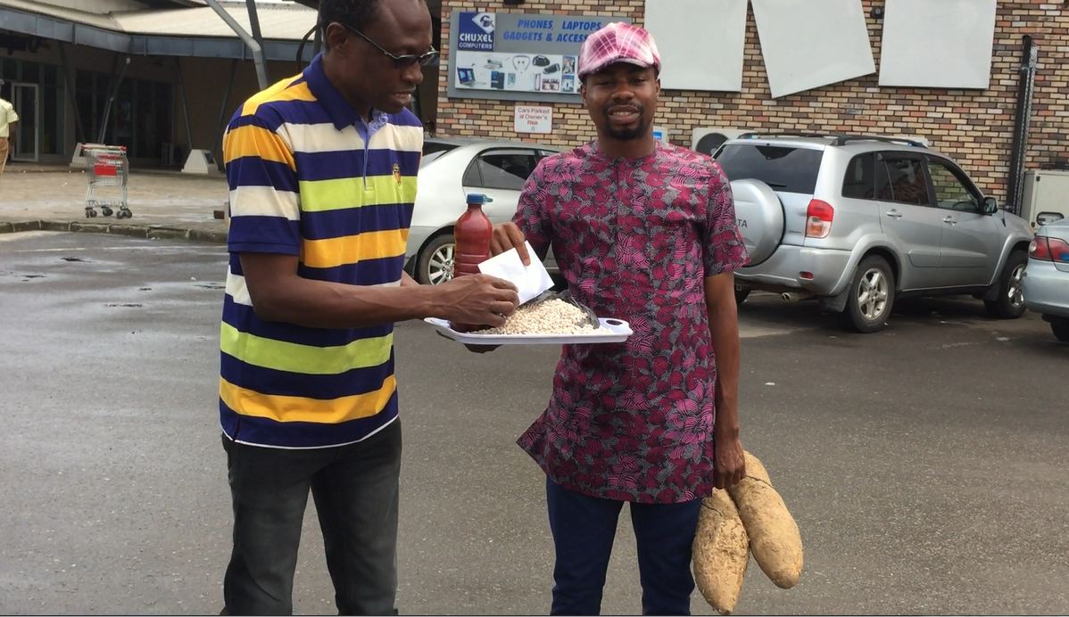 He received Agricultural items such as nine cups of beans, two tubers of yam, and a bottle of red oil, including an envelope with undisclosed amount, as gifts for his hard work.