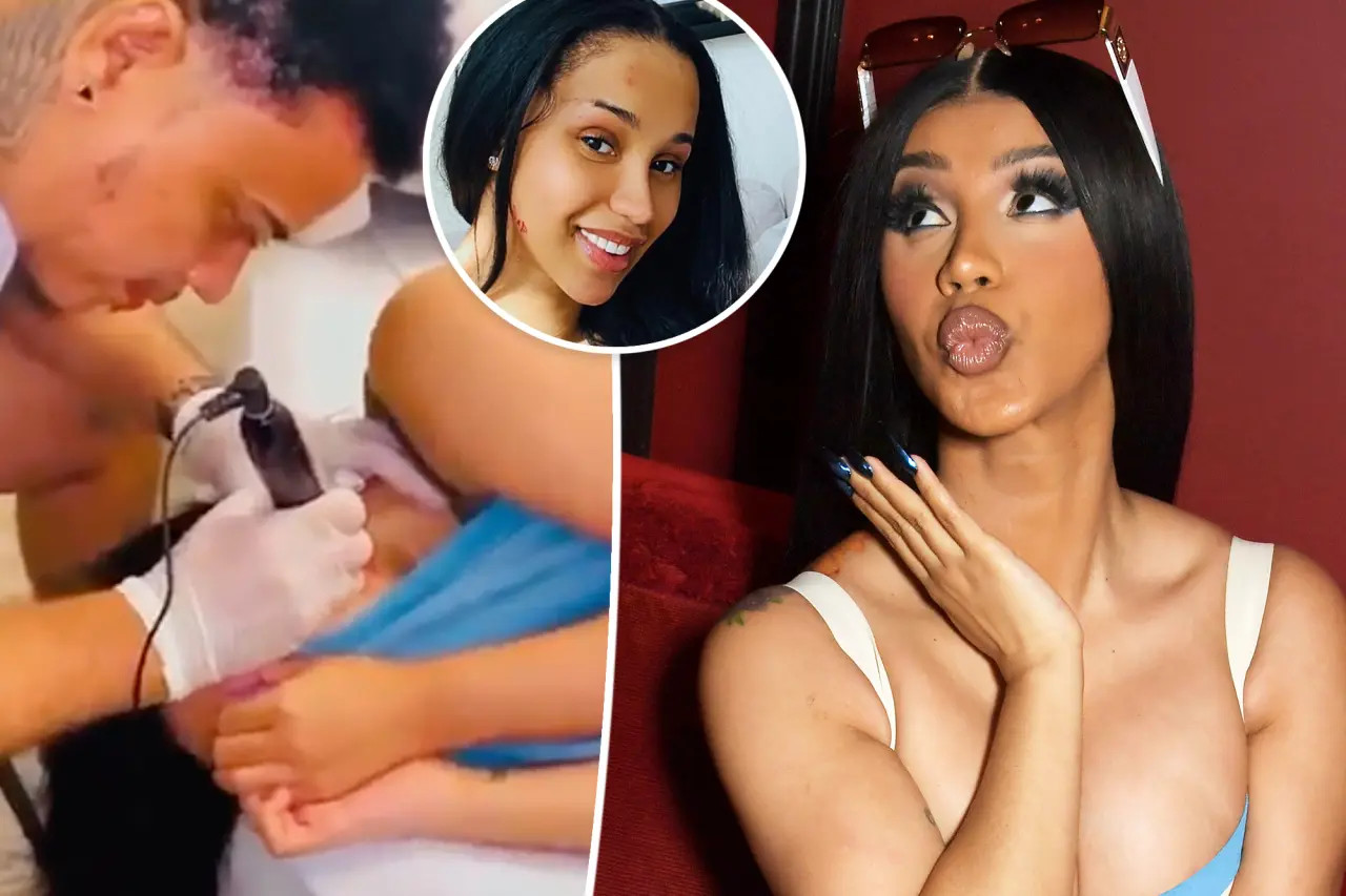 In the brief clip, Cardi holds a blue towel against her face as De Los Santos focuses on his work, noticeably using red ink. "Trabajo de hoy cardi B," he captioned the 13-second clip.