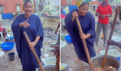 Now responding on Instagram, Mercy Aigbe has shared a video of herself cooking with the elderly housewives.