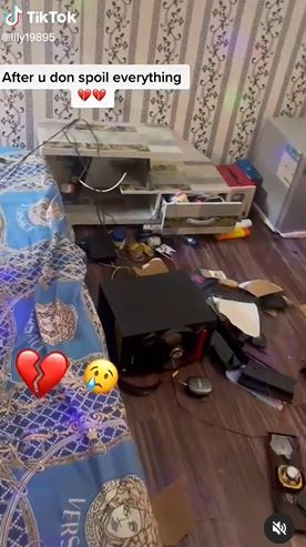 A video has captured the shocking moment a lady destroyed items in her boyfriend's house.