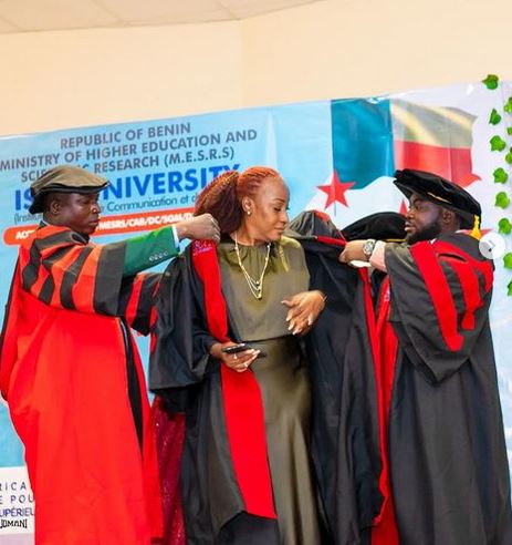 Nollywood actress, Ireti Doyle has been decorated with a doctorate in arts and culture from the Institut Supérieur de Communication et de Geston (ISCG University) in Benin Republic.
