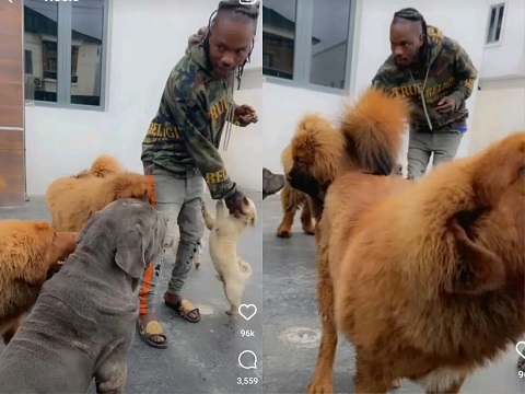 Popular singer, Azeez Fashola aka Naira Marley has showed off his dogs.