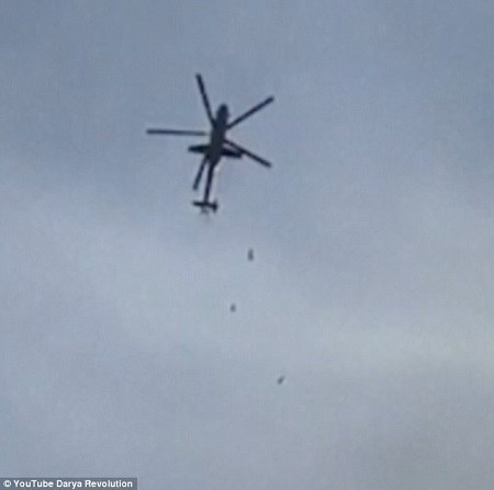 Darya has been a frequent target of the Assad government and thousands of people have fled the city. Attack helicopters have been used heavily since Russia entered the war, but the date of the bombing in the video is not clear.