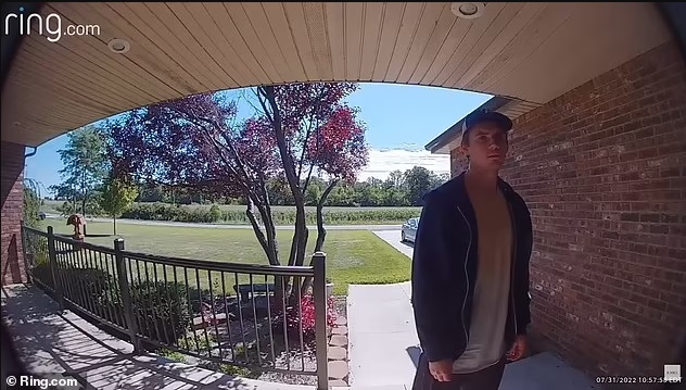 The Ring camera footage recorded on July 31, at 11 a.m. shows the man standing in front of the door while ringing the bell repeatedly.
