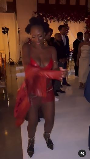 The mother of two took to her social media page to share video of herself dancing along with other guests including the bride and groom at the event.