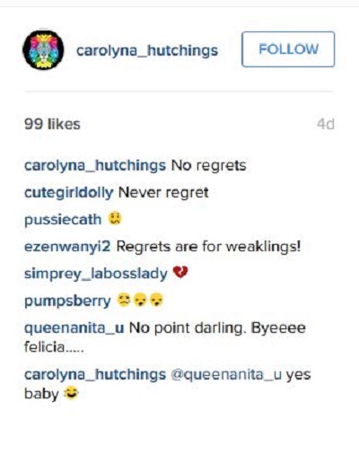 The south-south beauty seems set to call it quit officially because a few days ago she posted a picture of a broken heart with the caption "No Regrets" as rumours circulated that her husband brought his new mistress to their matrimonial home.