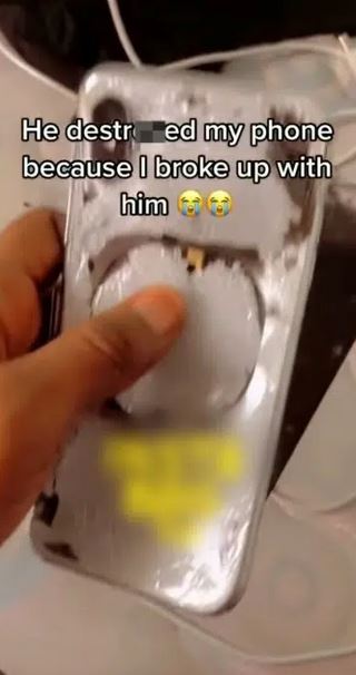 In a video the heartbroken lady shared, she could be heard sniffling and crying silently as she showed of her completely ruined iphone which her boyfriend smashed.