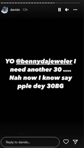 “Yo @bennydajeweler I need another 30… Nah now I know say pple dey 30BG”