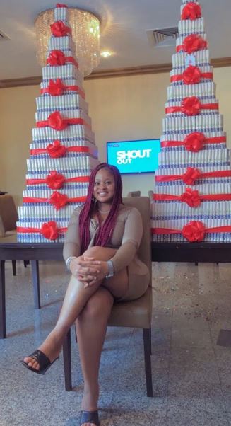 Ex-BBNaija Season 7 housemate, Amaka could not contain her excitement as she received money cake from fans.