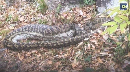 About 90 seconds into the footage, the camerawoman moves to stand side-on with the snake. At that point, only the tail of the kangaroo is seen sticking out of the reptile's deadly jaw.