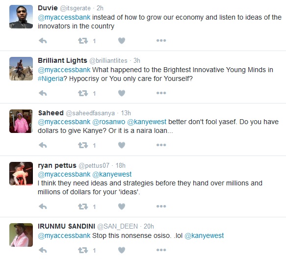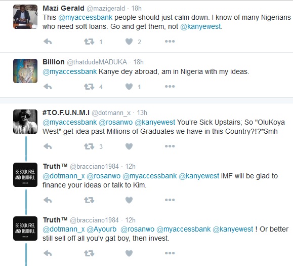 Media reactions has trailed Access Bank as Nigerians on social media has blasted the financial institution for publicly offering to help popular American rapper, Kanye West in funding his new ideas.