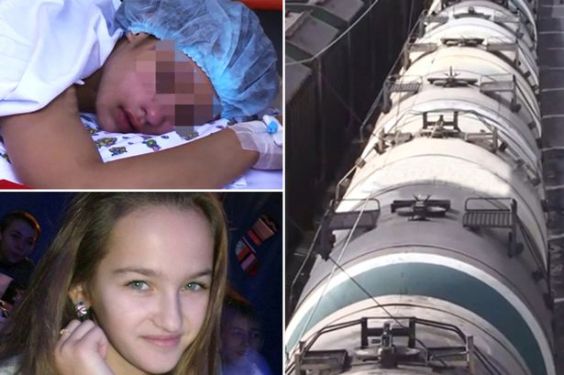 Anastasia, who can still talk despite the severity of her injuries, said: "We climbed on top of the tank car and then I heard a loud clap. We fell off the car and onto the ground. My hair was on fire and I was in so much pain."