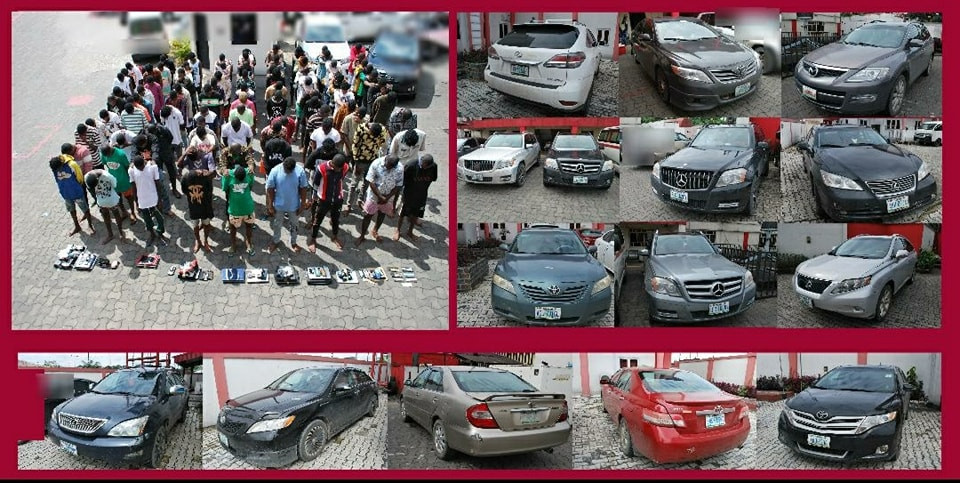 Items recovered from them are: phones of different brands, laptops, and fifteen vehicles (15) of different brands.