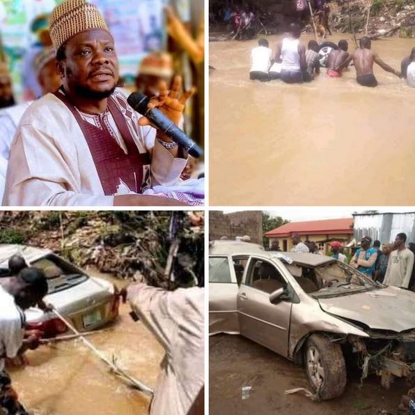 The cleric and his aides were coming from da’awah activity in Minna, Niger State, when the flood swept away his Toyota Yaris car while trying to cross a bridge near Harmony Estate/Kukende at the Akerebiata area of Ilorin.