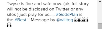 His close friend and collaborator, Willteg has come out to notify fans that Twyce is alive and being cared for.