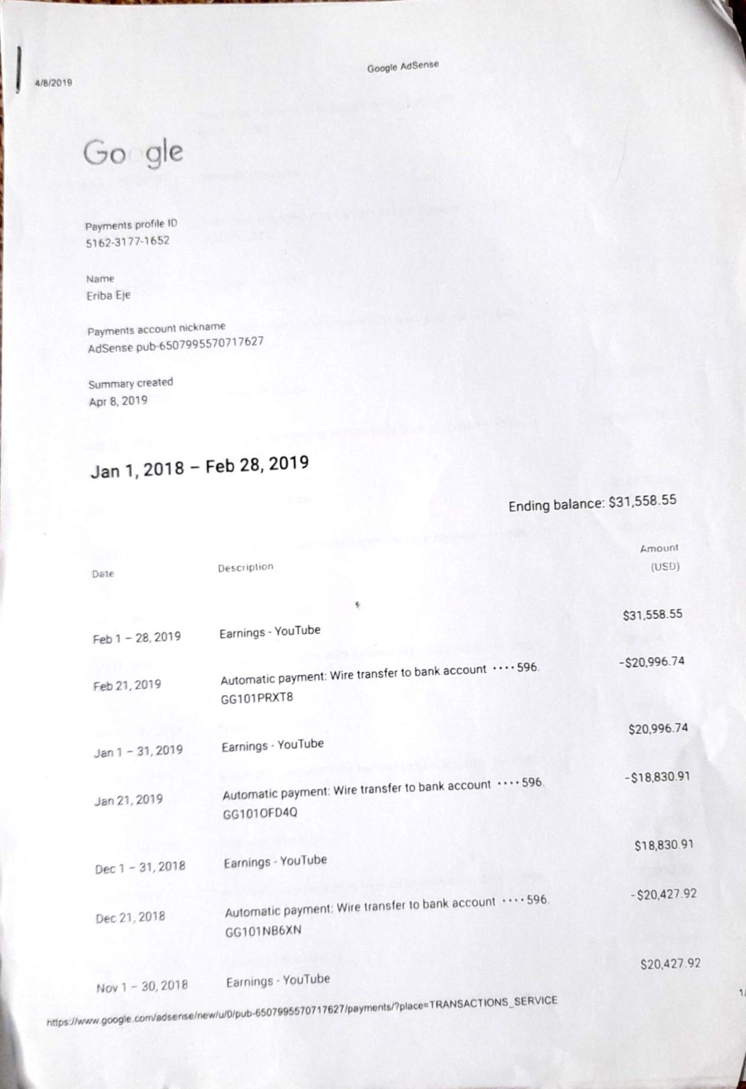 He showed EFCC his source of income which is Google Adsense from YouTube but the argument from EFCC was that he was too young to have such an amount.