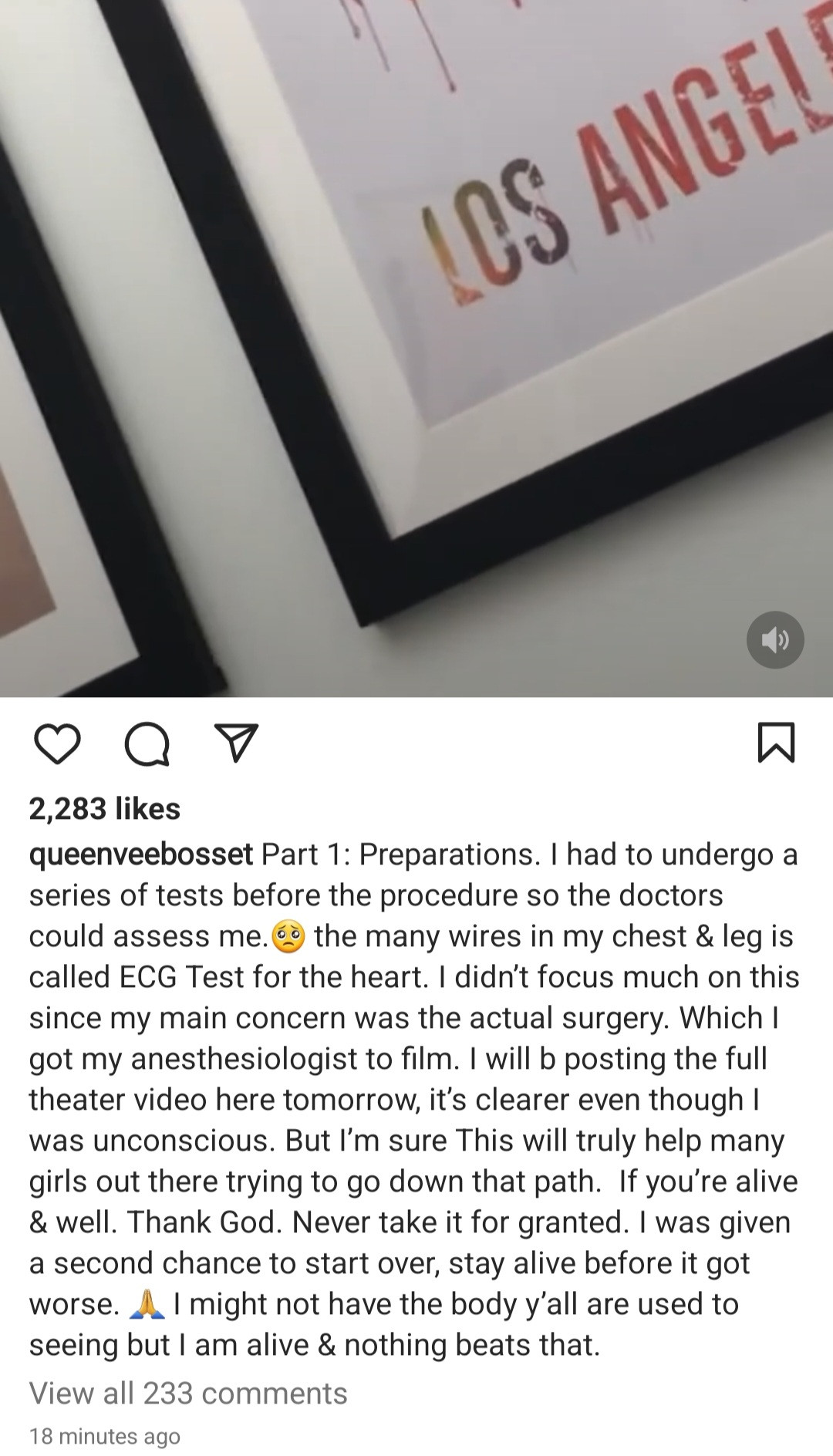 She returned to Instagram today to share photos from the corrective surgery she had recently.
