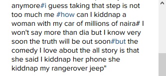 "She called and told me all these and I asked her next step, she said she was leaving him. Today on her way to location, she texted him that she was done with the relationship till he comes clean about what he does. We talked after that only for him to come to the location to seize her phones.