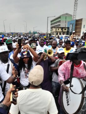 On Sunday, Akinsanya, popularly known as MC Oluomo, and thousands of his supporters marched on the ever-busy Ikorodu road and other parts of Nigeria’s economic capital.