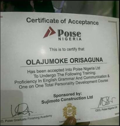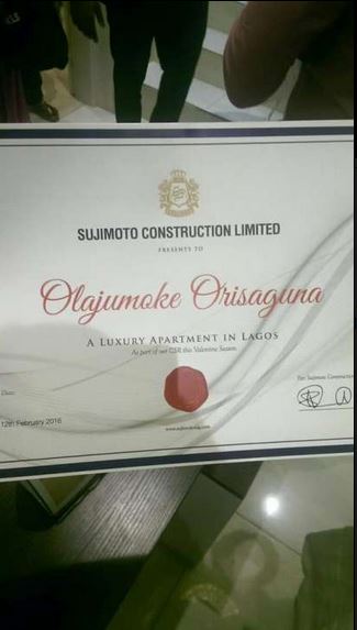 Olajumoke Orisaguna's dramatic rise to stardom as attracted a good number of Nigeria’s leading brands and this time, she got a newly furnished luxury apartment in Lagos from Sujimoto Construction Limited owned by one of the youngest billionaires in Nigeria named Sijibomi Ogundele, in addition to an enrollment into the Poise finishing school.