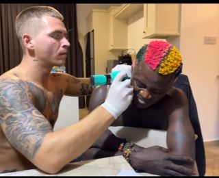 A video has captured the moment controversial singer, Portable got a face tattoo.