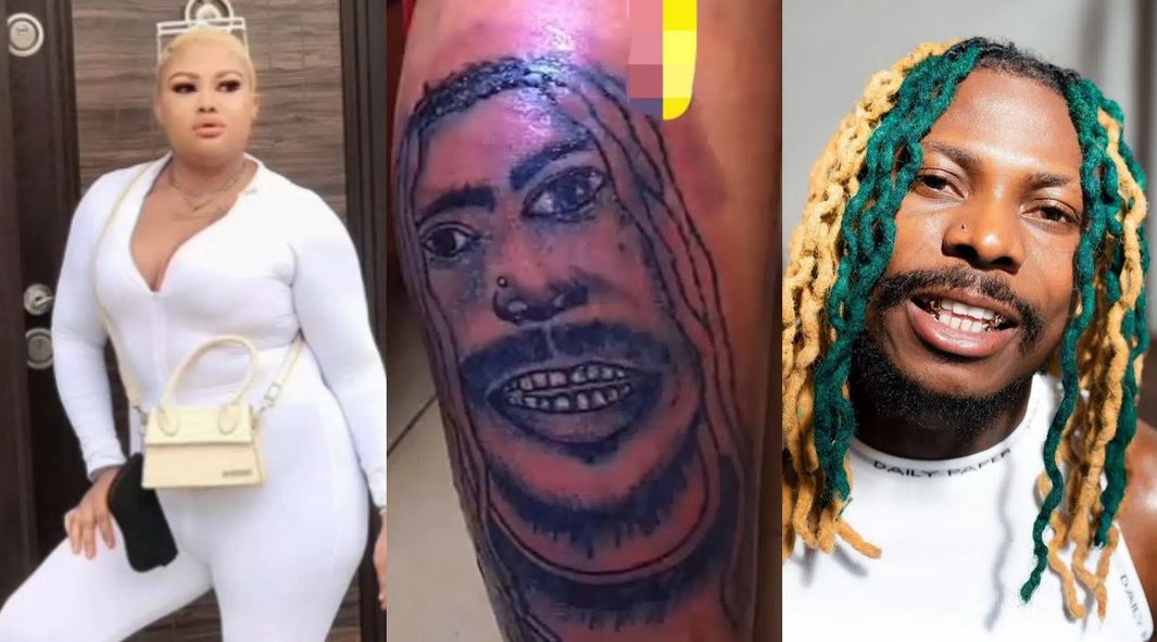 Social media users are reacting after a female fan tattooed the face of fast-rising singer, Asake on her leg.