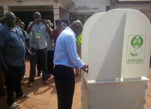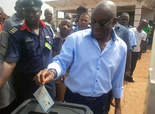 Ex Senate President, David Mark Casting His Vote at the Ongoing Senatorial Election in Benue (Photos)