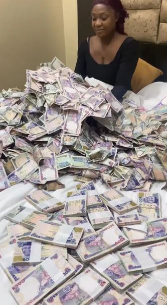 Popular actress, Lizzy Gold has shown off wads of cash she received during her birthday celebration.