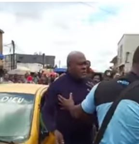 The crowd who had assembled around the makossa singer’s car to witness the incident, continuously booed Longue Longue as he showed no sign of remorse.