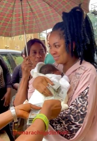 Popular Nigerian actress, Amarachi Igidimbah was overjoyed after she received a Mercedes Benz, dollar notes and an iPhone as a push gift from her husband.