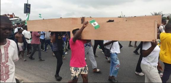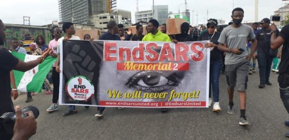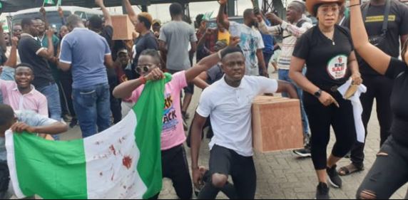 The youths in their numbers on Thursday morning showed up with dummy coffins and bloodstained Nigerian flags at Lekki toll gate in Lagos State to commemorate the second-year memorial of the EndSARS protest shooting.