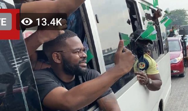 According to a video shared by Channels TV, speaking during the procession, Falz said they were at the toll gate as a result of those who he alleged were killed at the place two years ago during the #EndSARS protest, adding that the alleged killing was being denied by the government. “Government dey try deny say e happen, but we will never let that happen,” Falz said in pidgin English.