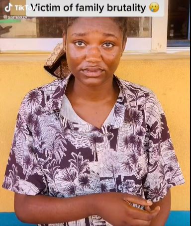 A young lady identified as Blessing, who was recently beaten up by a lecturer and his children has been seen displaying her injuries.