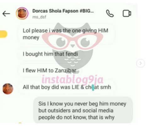 “I was the one feeding him. I bought him that Fendi. I flew him to Zanzibar. All that boy did was lie and cheat,” she wrote.